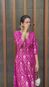 Sneha Adwani in Magenta Banarsi Silk Kurta Garara with Organza DuppattaSneha Adwani in Magenta Banarsi Silk Kurta Garara with Organza Duppatta