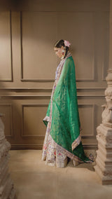 • Dupatta: Lightweight organza adorned with exquisite hand zardosi embroidery