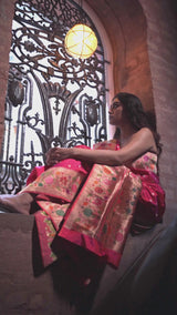 · Pallu & Border: Heavy golden zari woven pallu and traditional border that adds a regal touch.